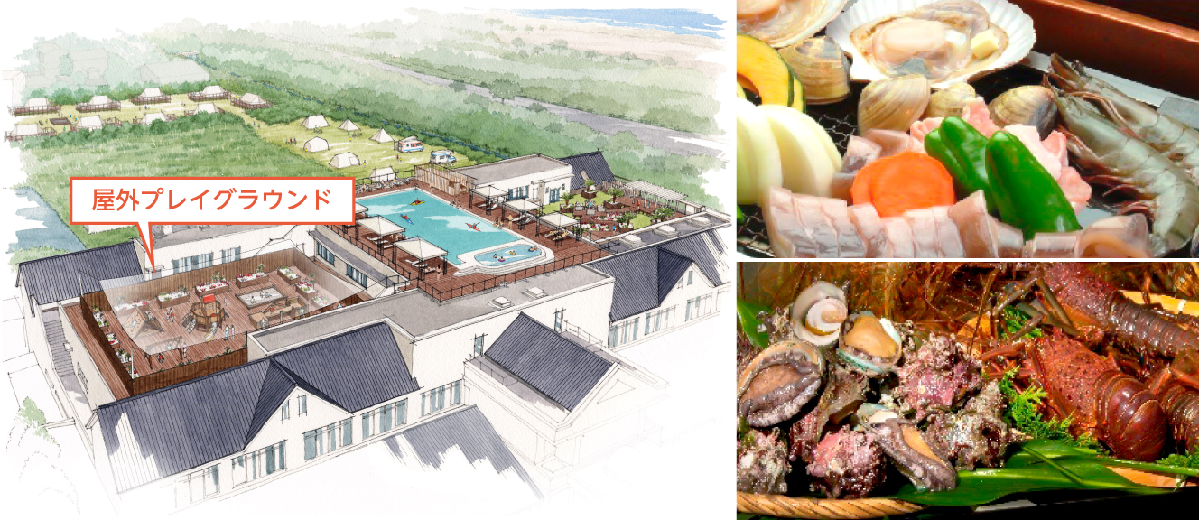 屋外プレイグラウンドで遊びながらBBQが楽しめちゃう!新鮮な旬の食材を使った海鮮BBQ!