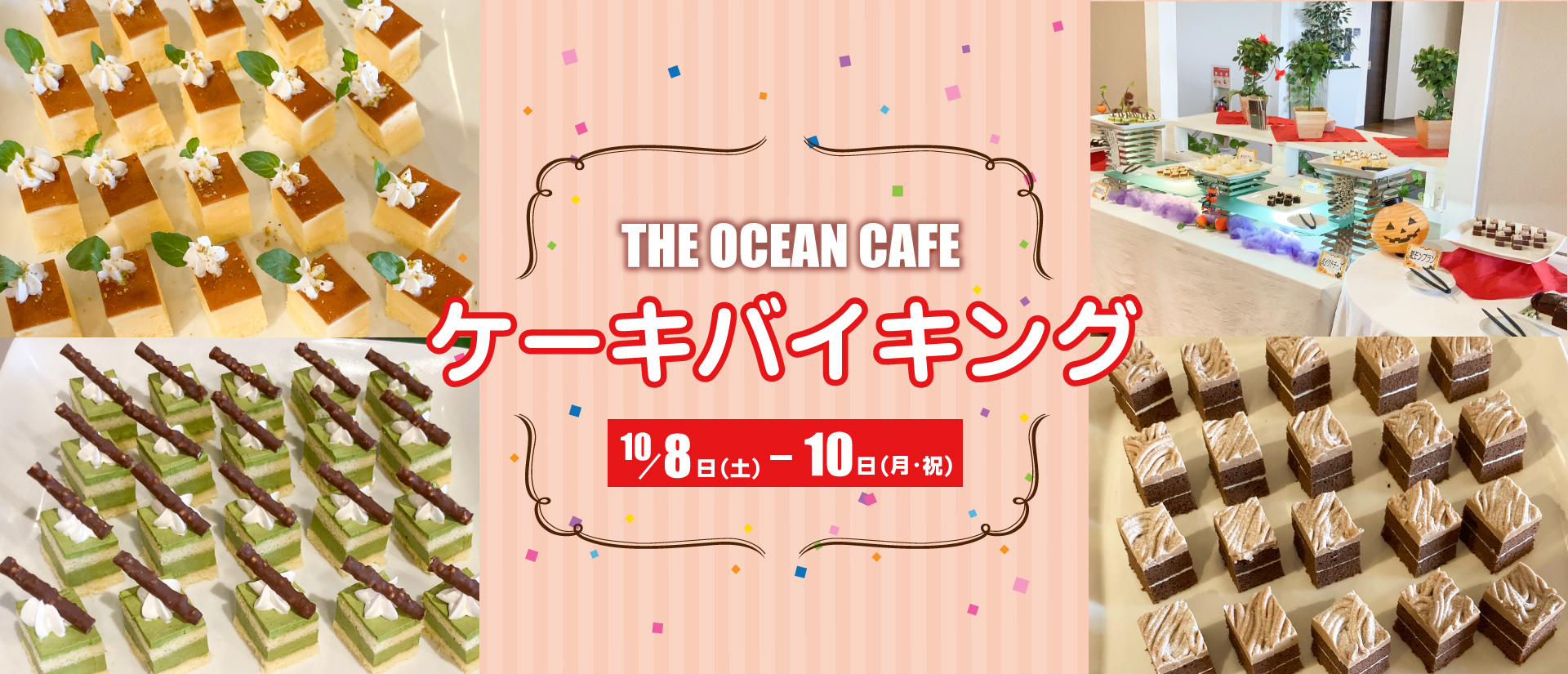 ケーキ、軽食、ソフトドリンク飲み放題